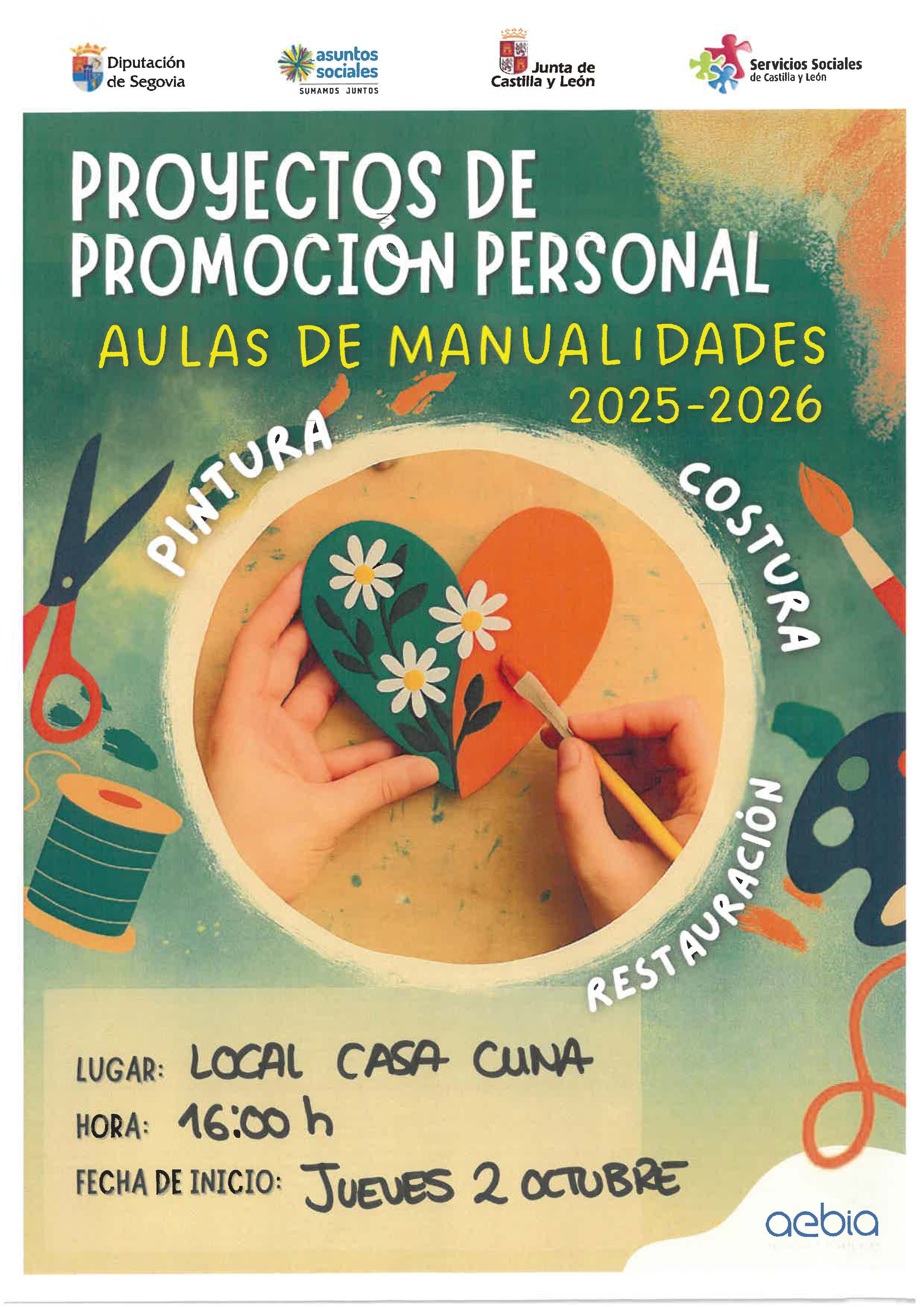 Aulas de manualidades 2025-2026 Aulas de manualidades 2025-2026 En la Casa Cuna a las 16:00 jueves 2 de octubre