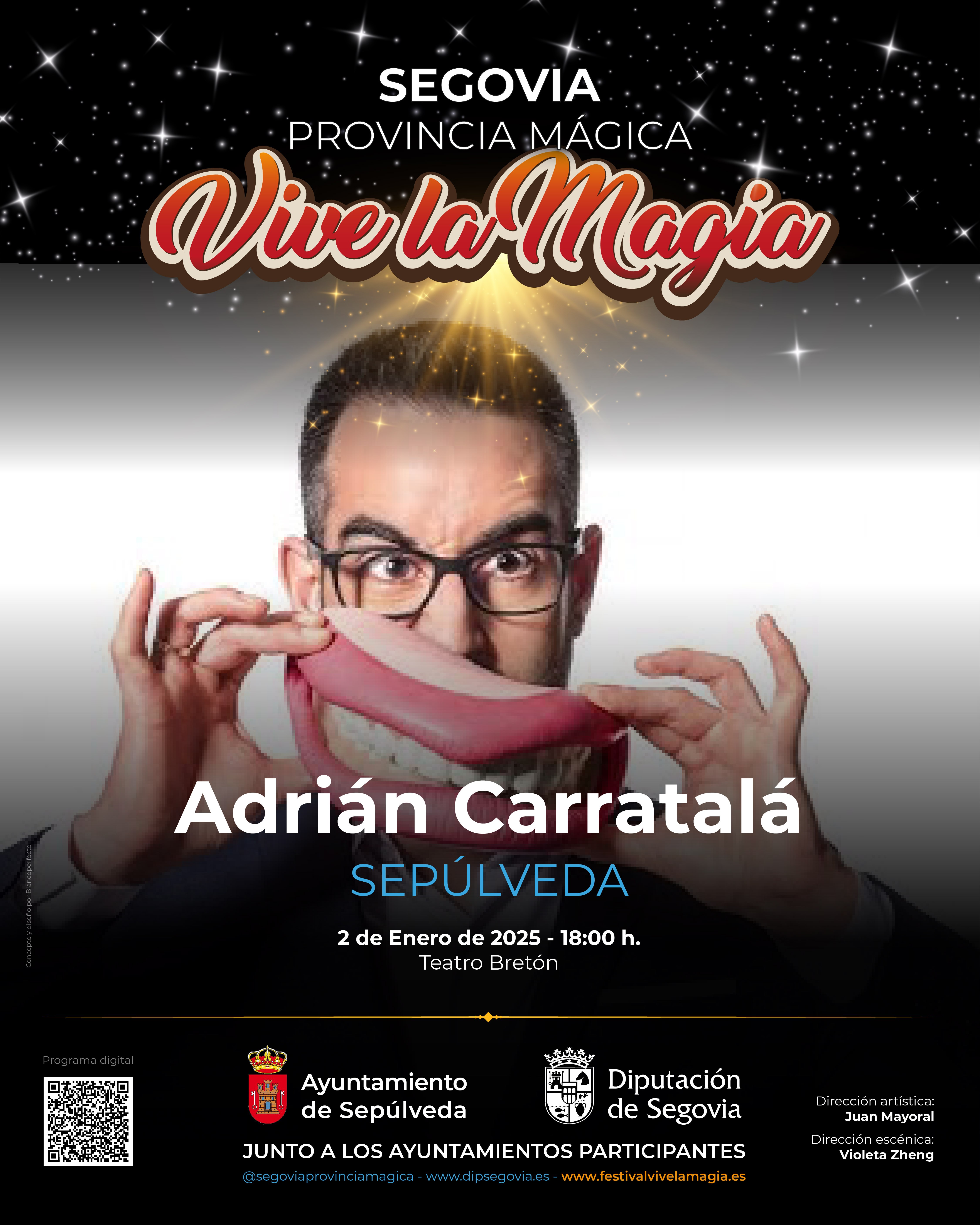 Actuación del mago Adrián Carratalá el jueves 2 de enero a las 18:00 en el teatro Bretón de Sepúlveda.