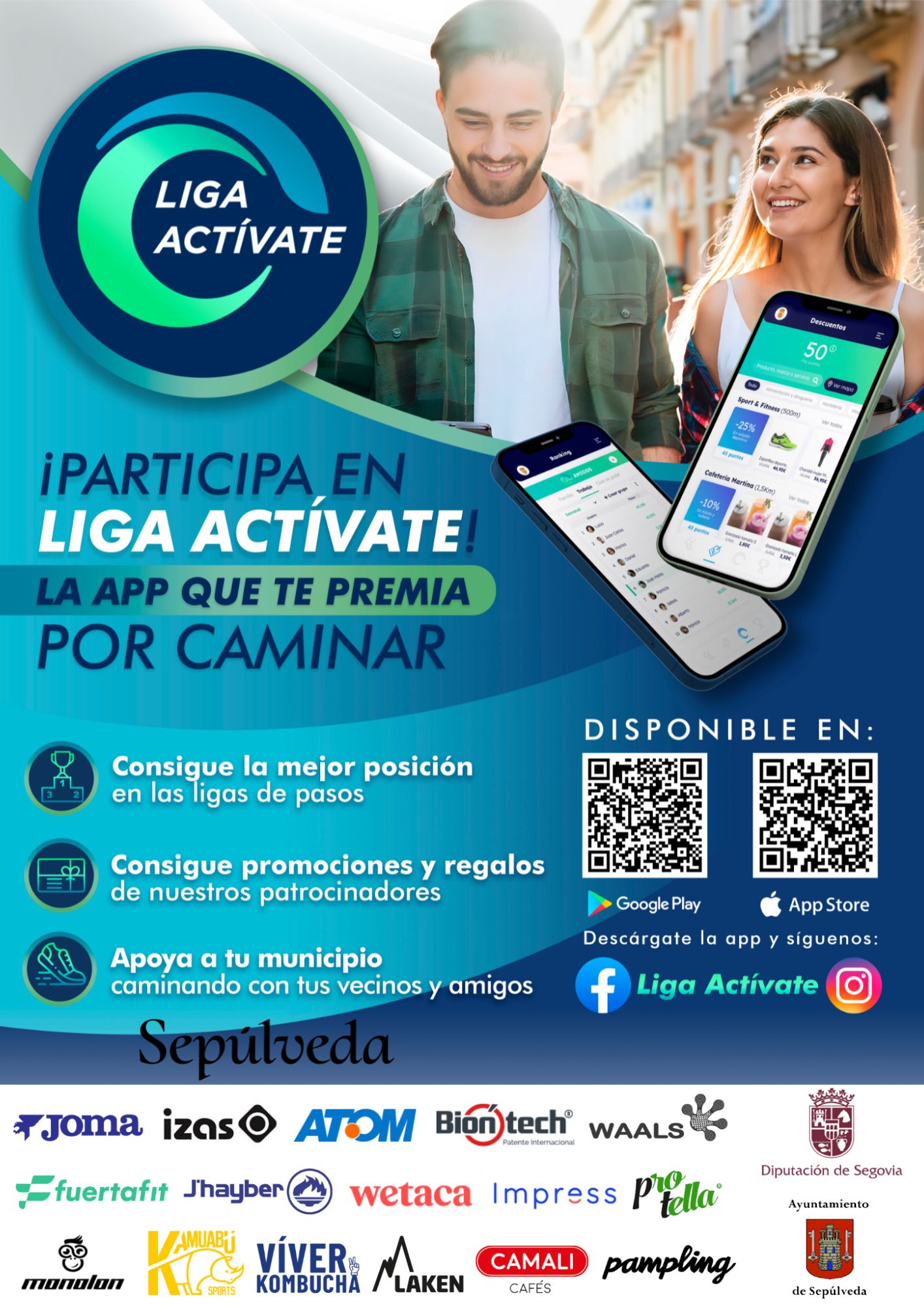 Es la Liga de pasos que conecta municipios, vecinos y amigos, premiándote por caminar y correr con promociones y regalos.