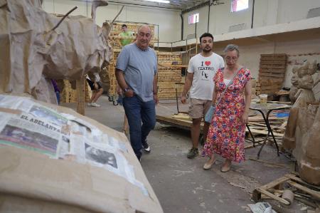 Quienes decidan finalmente asistir podrán comprobar el resultado de los trabajos que, durante la visita, ultimaban los componentes de las peñas Ke-Tal, El Calentón, Nos llaman la Barra, El Descontrol, La Trifulka, Adyctos, El Resacón, La Tejada, Kaluas, Pequeños Alborotaos, Bare Nostrum y La Cuba. Fuertes de vaqueros, chiringuitos de playa, imágenes egipcias, toros e incluso parte de la familia Picapiedra reciben esta semana los últimos retoques para estar a punto para el gran día, después de que, durante meses, menores y adultos hayan trabajado en su composición; desde la elección de la temática hasta el pintado de las carrozas, pasando por las estructuras realizadas en alambre y metal y las pequeñas bolas de papel que dan volumen y forma a las mismas, tal y como explicaban al presidente las representantes municipales y el presidente de la Asociación. De Vicente ha valorado la “calidad artística” de las creaciones que van desde el diseño a la propia confección de la obra con distintos materiales, “que se realiza sin ninguna ayuda profesional”, considerando esta circunstancia como “clave” para que “entre las gentes de Fuentepelayo y el Ayuntamiento haya perdurado en el tiempo durante sesenta años”.