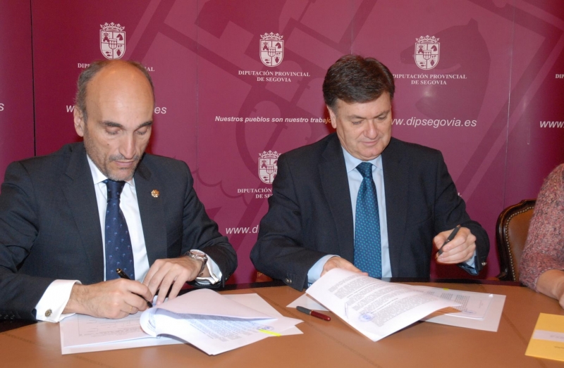 El presidente de la Diputación de Segovia, Francisco Javier Vázquez Requero, y el presidente del Ilustre Colegio de Gestores Administrativos de Madrid (ICOGAM), Fernando Santiago, han firmado hoy un convenio de colaboración para el pago de los tributos municipales encomendados a la Diputación.